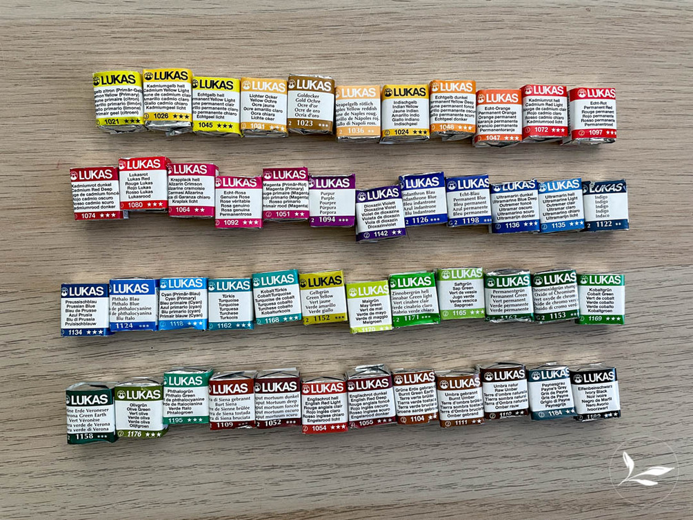 LUKAS Aquarell 1862 Watercolor: 48-color set swatch chart